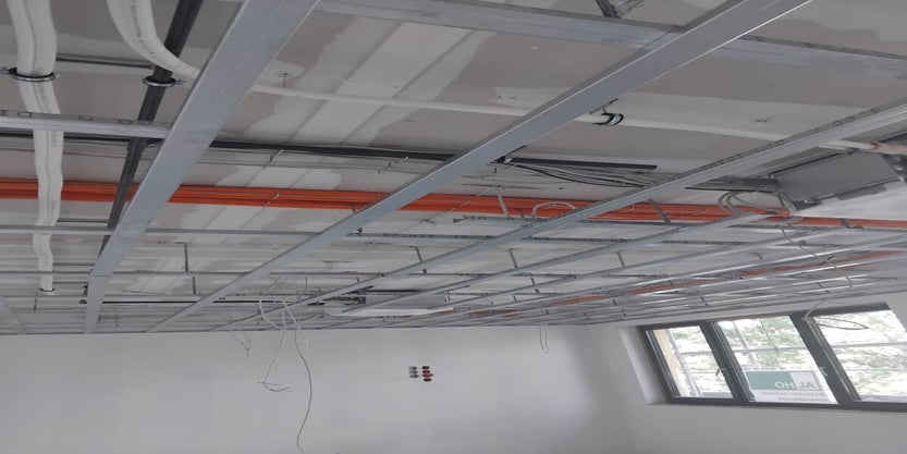 • Bodenverlegung und Doppelböden: Neben Wänden und Decken bieten wir auch Lösungen für Bodensysteme. Doppelböden sind ideal, um technische Installationen zu integrieren, während Trockenestriche eine schnelle Alternative zu herkömmlichen Estrichlösungen bieten.